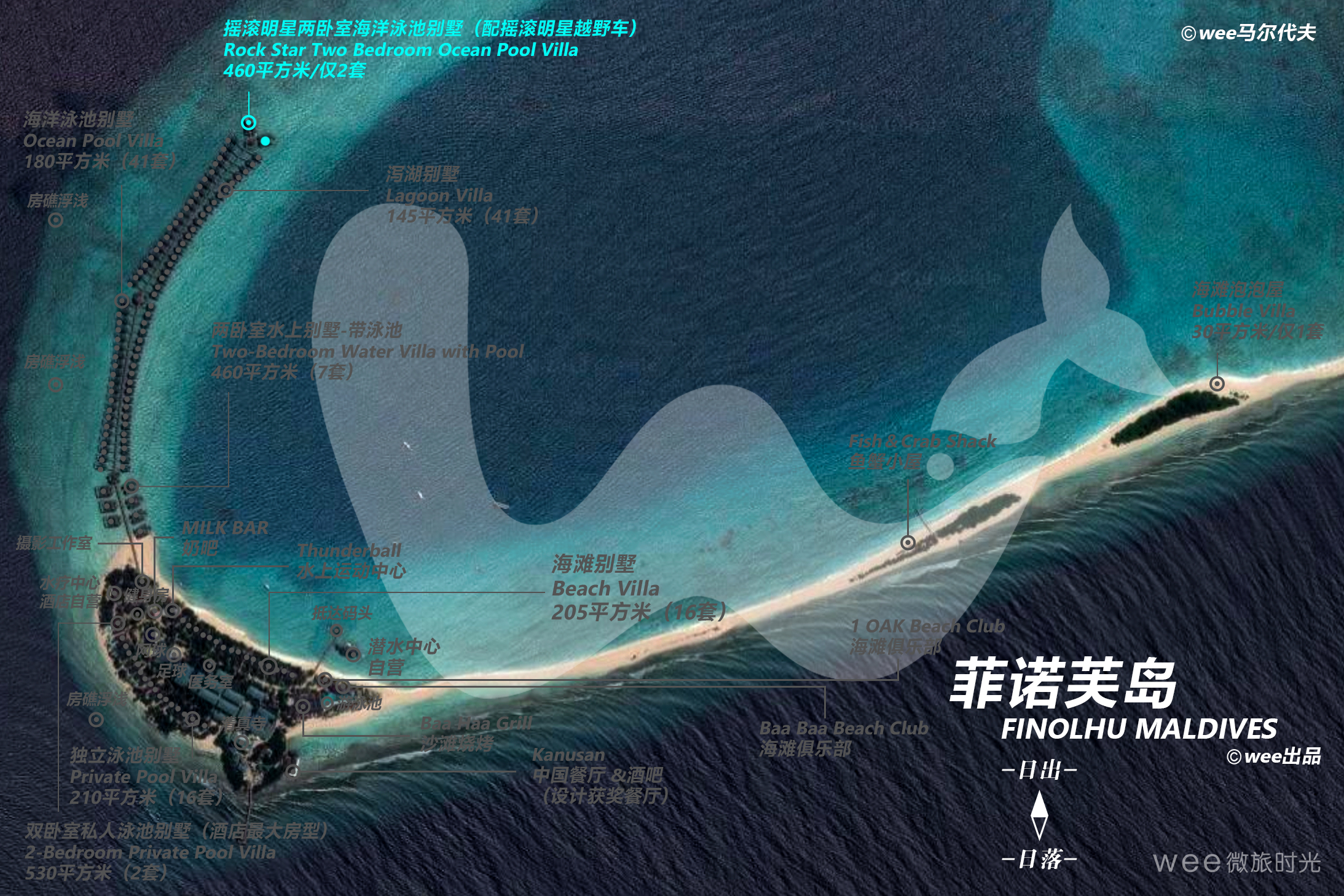 当你在菲诺芙岛的摇滚明星别墅入住时可以尽情的感受度假休闲之感,私人460平方米的Rock Star两居室海洋游泳池别墅位于码头的尽头,提供无遮挡的海景,是家人和朋友在一起旅行的理想之选。