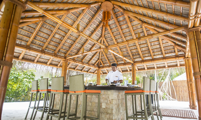 在Tappanyaki日式铁板烧餐厅探索东方传统美食-日本料理。这家餐厅隐藏在棕榈树和热带竹林之间,提供烹制的海边正宗日本料理和精选的清酒。在这里可以充分享受马尔代夫的豪华假期,并在入住期间感受一种全新的体验。就座于这个宜人的日式铁板烧餐厅,每一道菜在你眼前完美的呈现它最好的一面,色香味俱全。