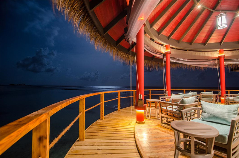 这里曾获2017年亚洲风味世界级豪华餐厅大奖,每周开放5天。Kanusan餐厅位于岛屿的顶端,可通过木制码头抵达,拥有印度洋全景,是Finolhu的高级餐饮场所。餐厅呈现中式的红色装修风格,温暖和谐。你可以选择在户外阳台或者餐厅内部就餐。