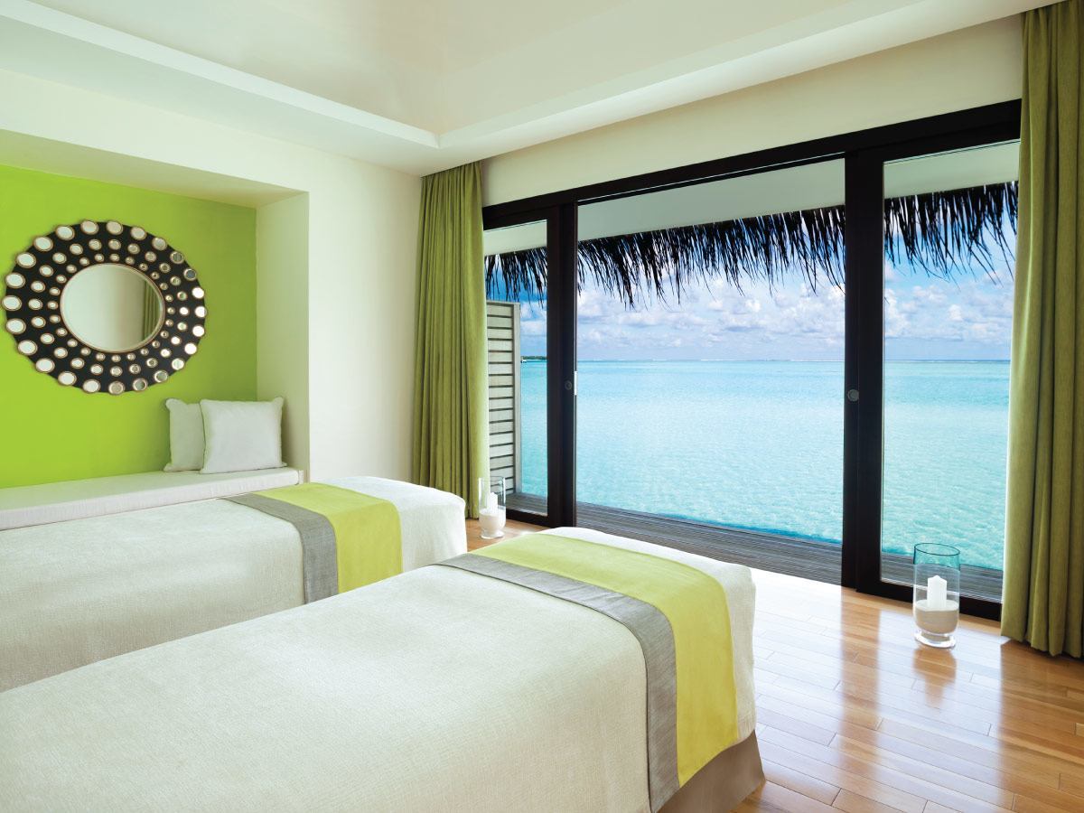 SPA水疗中心有海景房也有花园房,海景房就是面朝大海,花园房藏在花园里,很舒适惬意。或从水上静居眺望环礁湖,或是隐匿在私家花园里。
