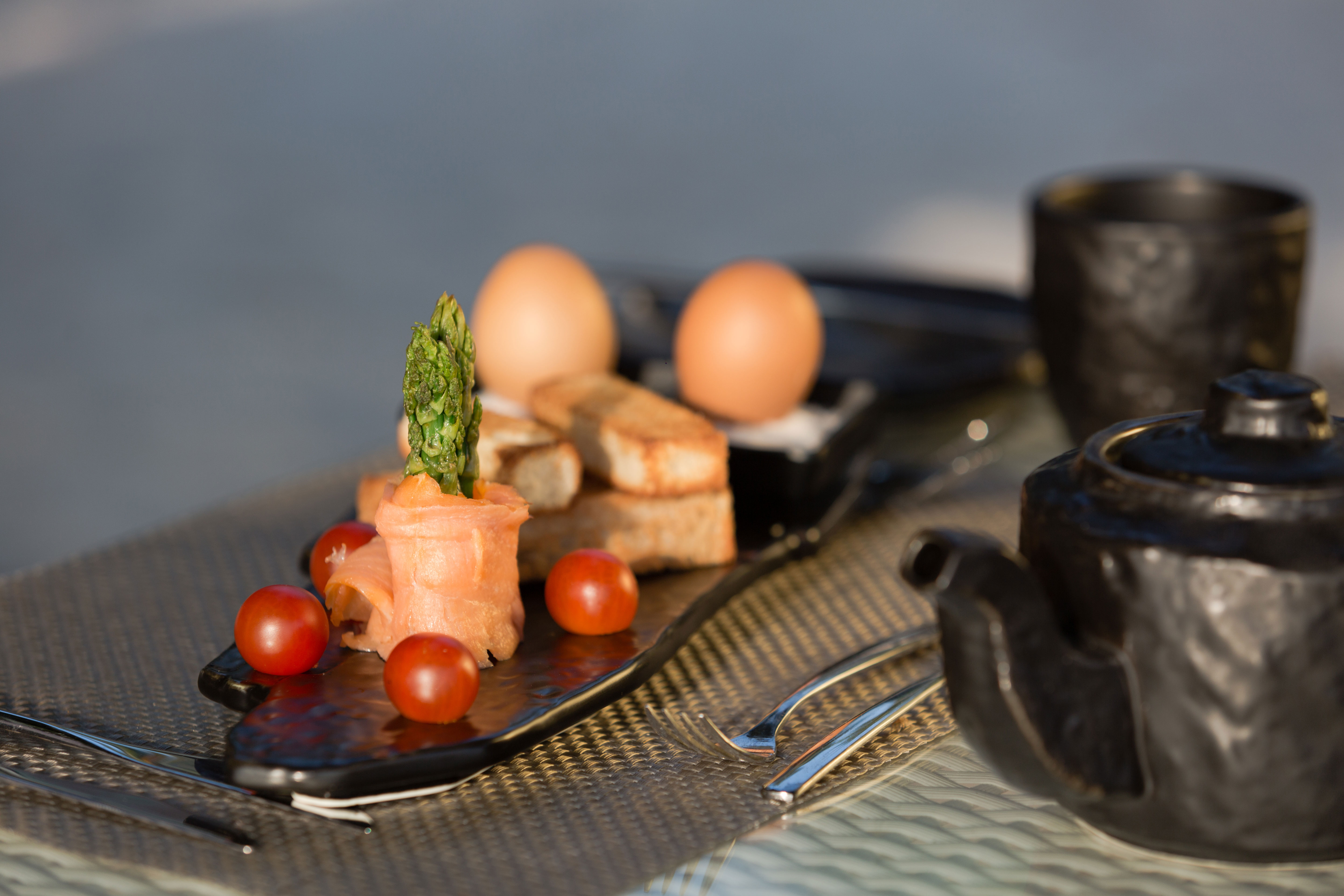 客人可以在海滩上或Bluu餐厅享用精心准备的美食,这些美食都是精心烹制而成。