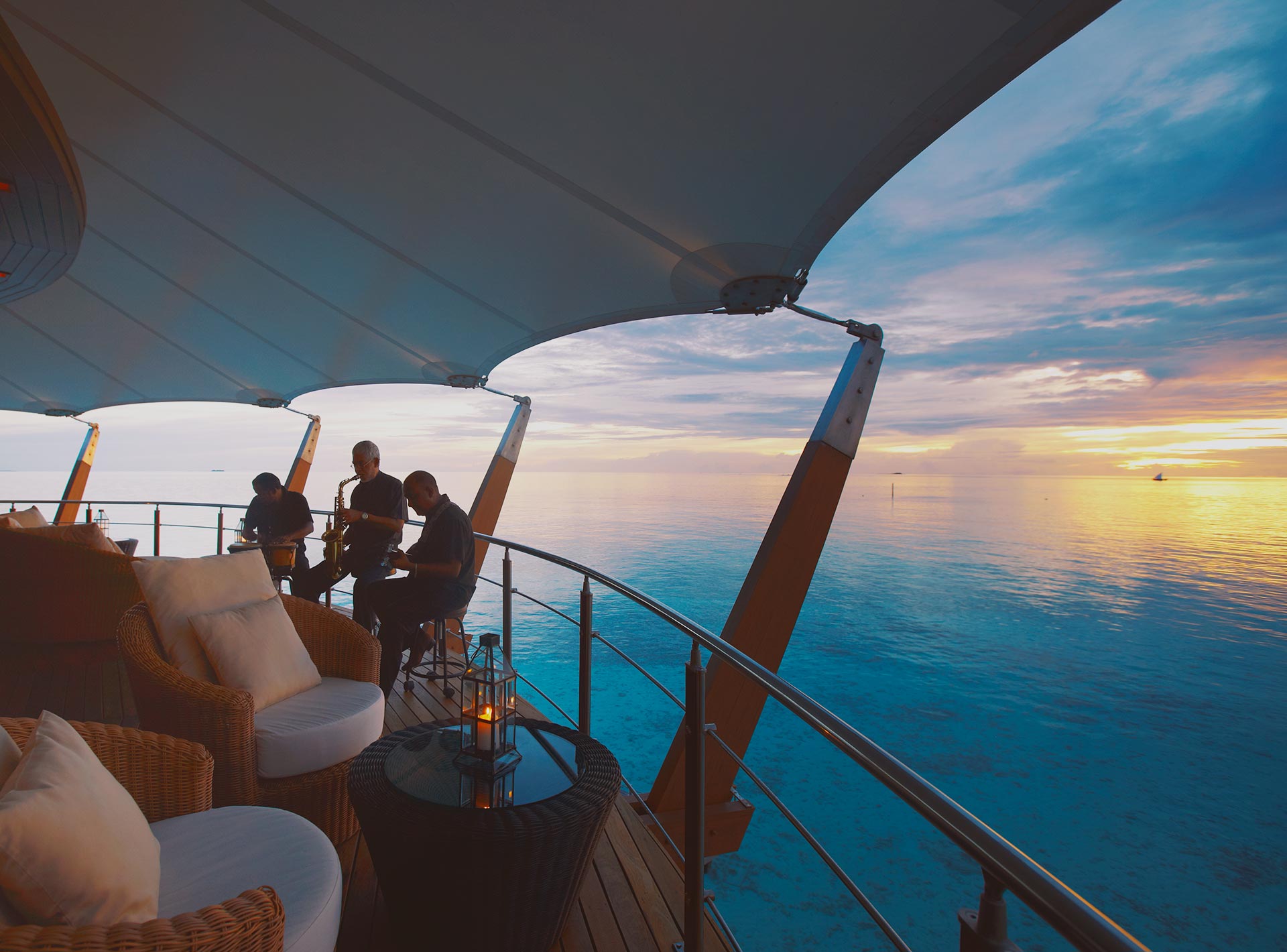 每周五晚还会有马代本地音乐人演奏的爵士或蓝调音乐,伴着夕阳和星光,乐曲动人,海风轻拂。
