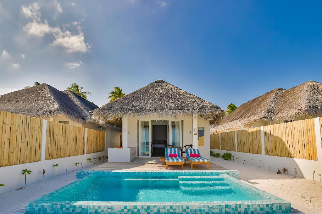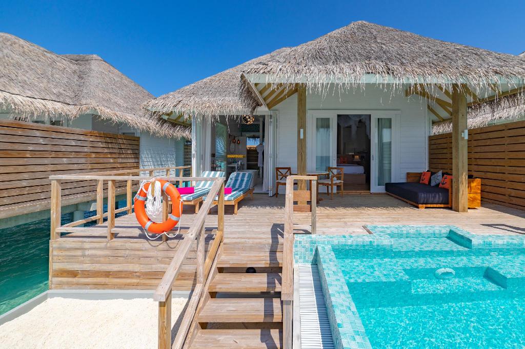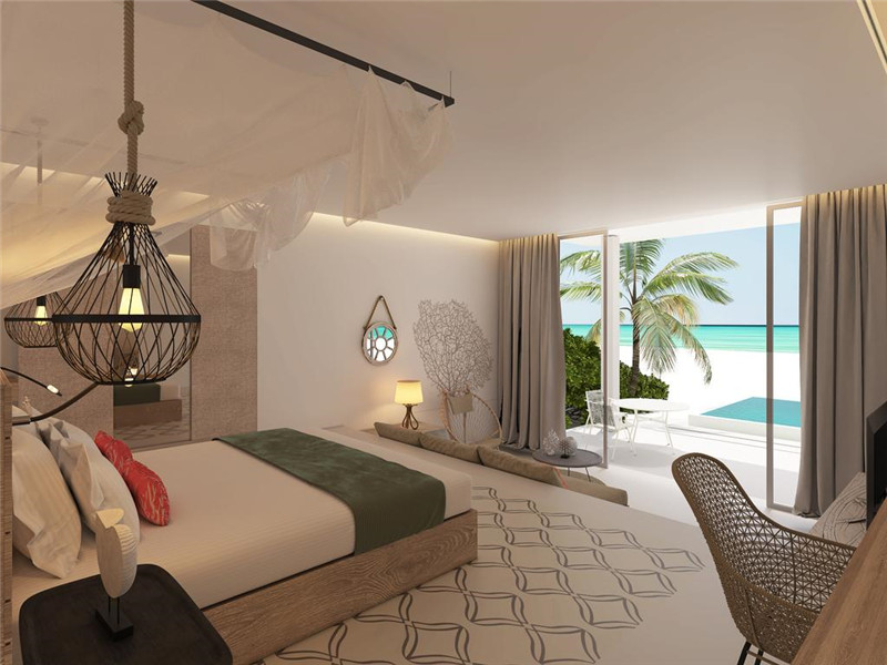 伊露薇莉岛(Sun Aqua Iru Veli)2018年开业,属于SUN SIYAM酒店品牌,环岛周长928米,在马尔代夫属于小型度假岛屿。沙滩5分/最高5分,100%环岛,平均宽度10米;浮浅4分/最高5分,房礁50%环岛区域,距离沙滩最近65米。