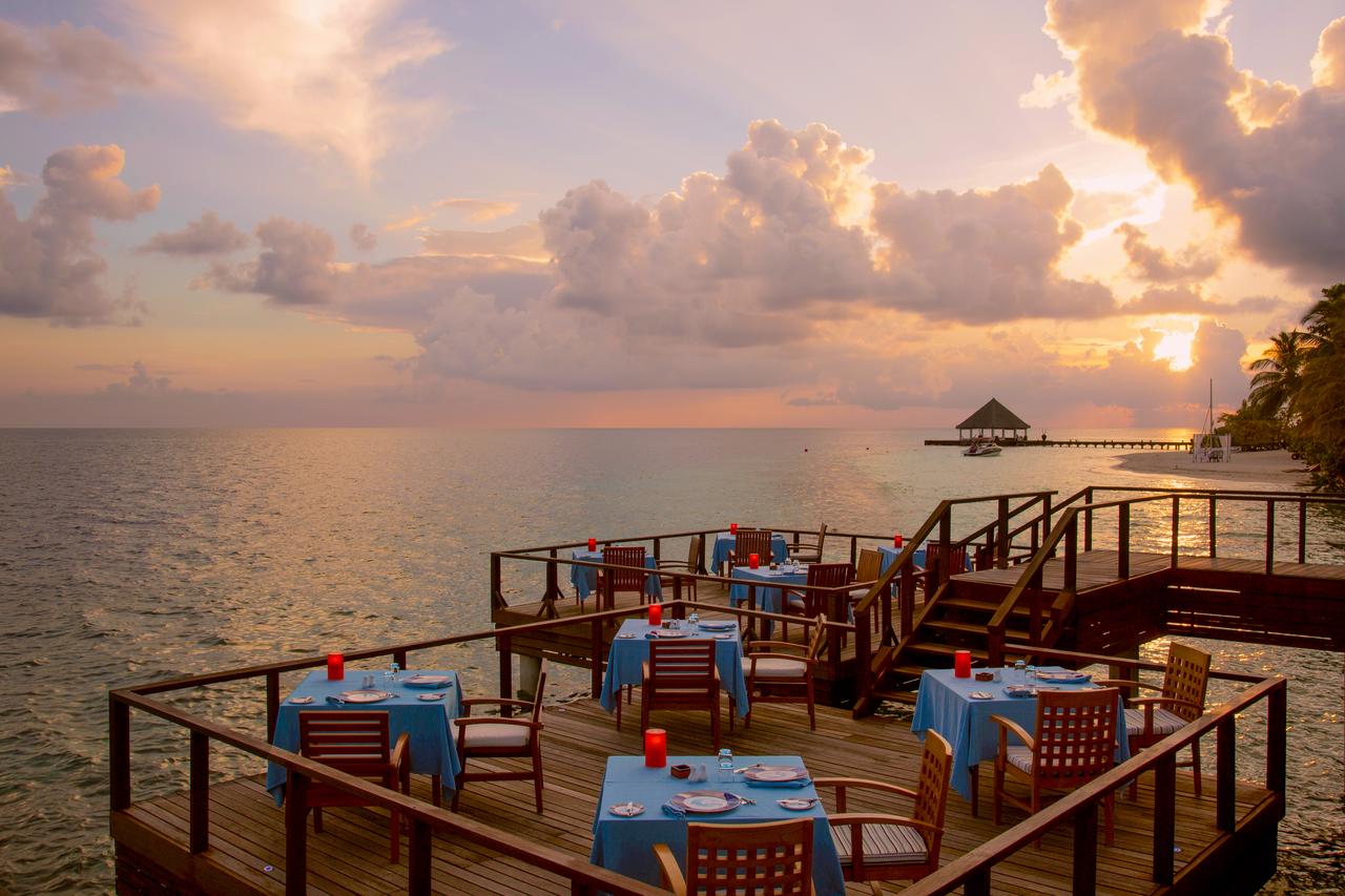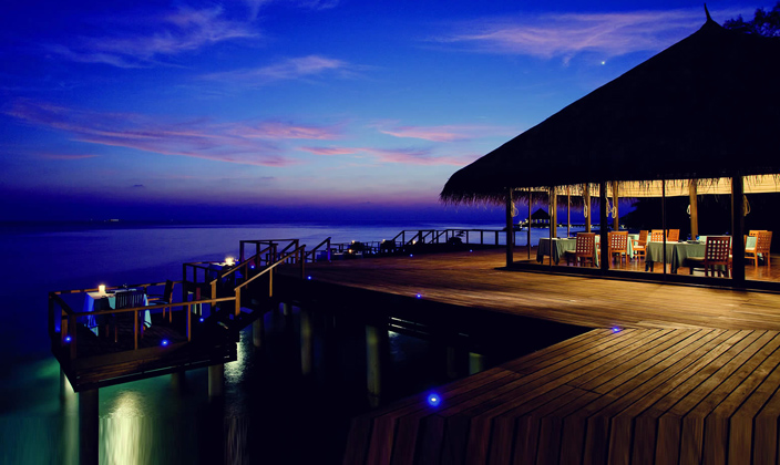 Aqua 餐厅以季节性菜单为主,以当地的海鲜捕捞为主。餐厅仅供应晚餐,拥有独特的浪漫氛围。坐落在水面上,提供壮观的景色以及美味的食物和服务。2016年,被评为世界奢侈餐厅奖的“马尔代夫最佳豪华海鲜餐厅”。