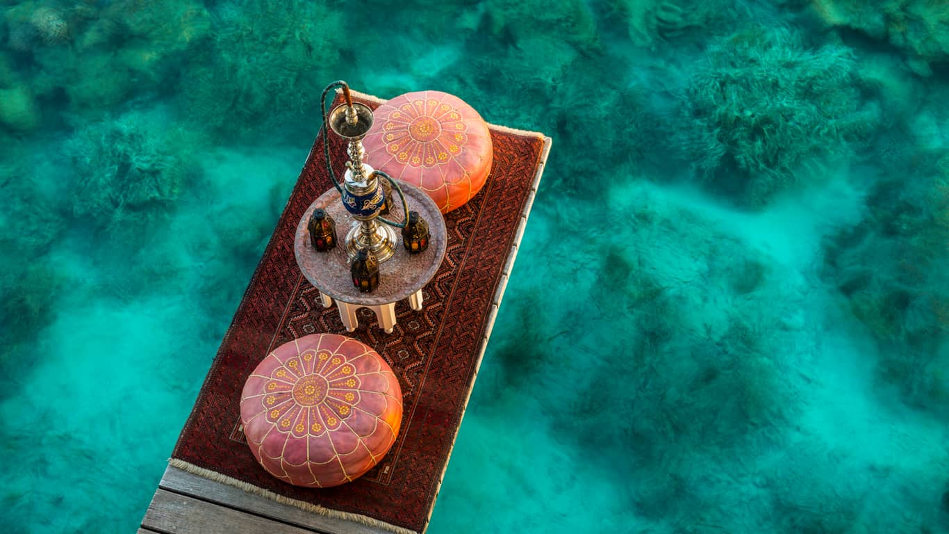 水烟吧设于水面,华丽优雅,供应阿拉伯咖啡和正宗水烟管。