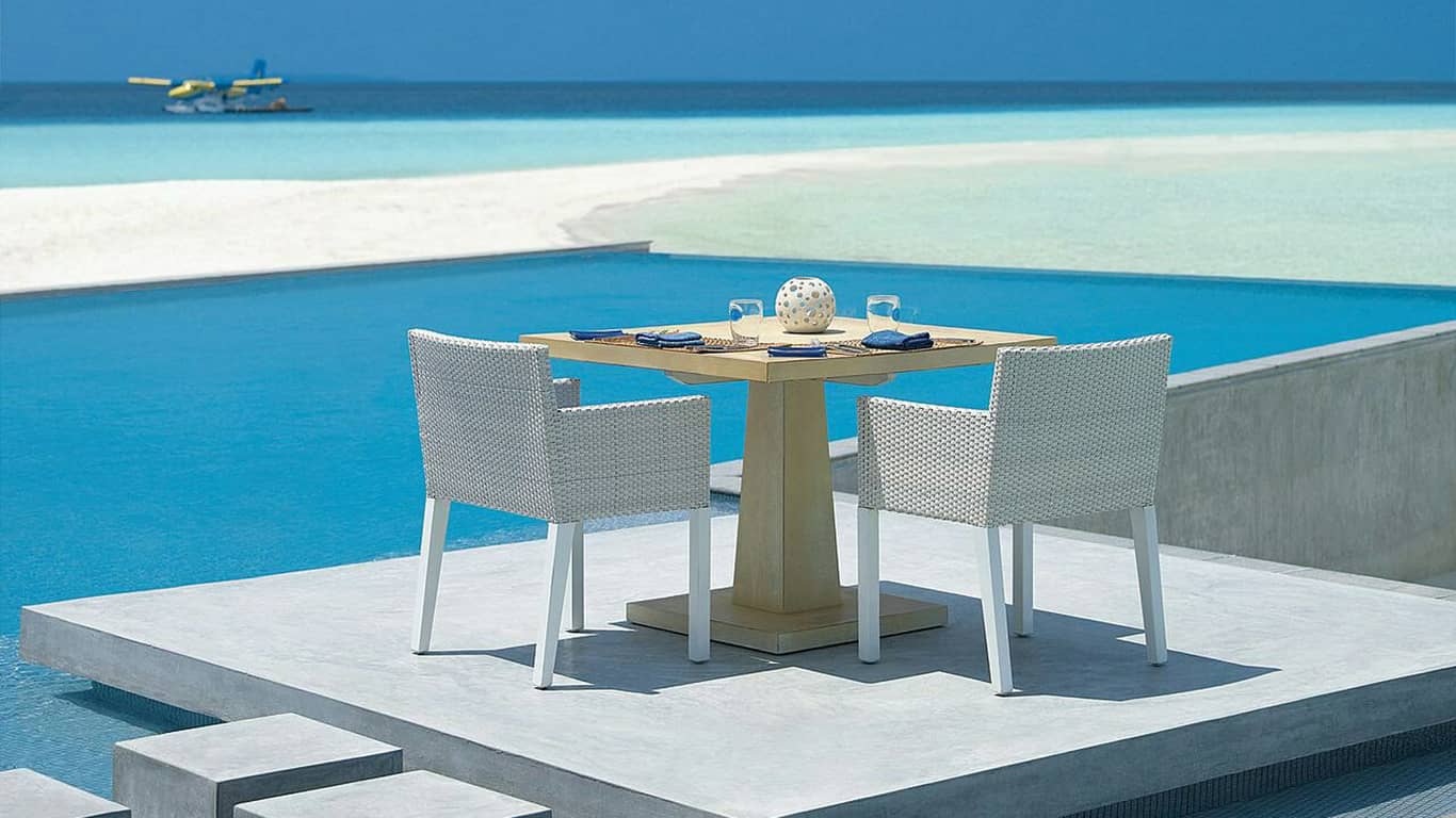 Landaa 餐厅由三座以茅草棚为顶的亭楼组成,位于海岛北岸,中间相隔蓝丝带般的宁静湖面,可欣赏到泳池与海滩的迷人景观。餐厅供应早中晚三餐,由厨师精心烹制融合东西方特色的精致美食。