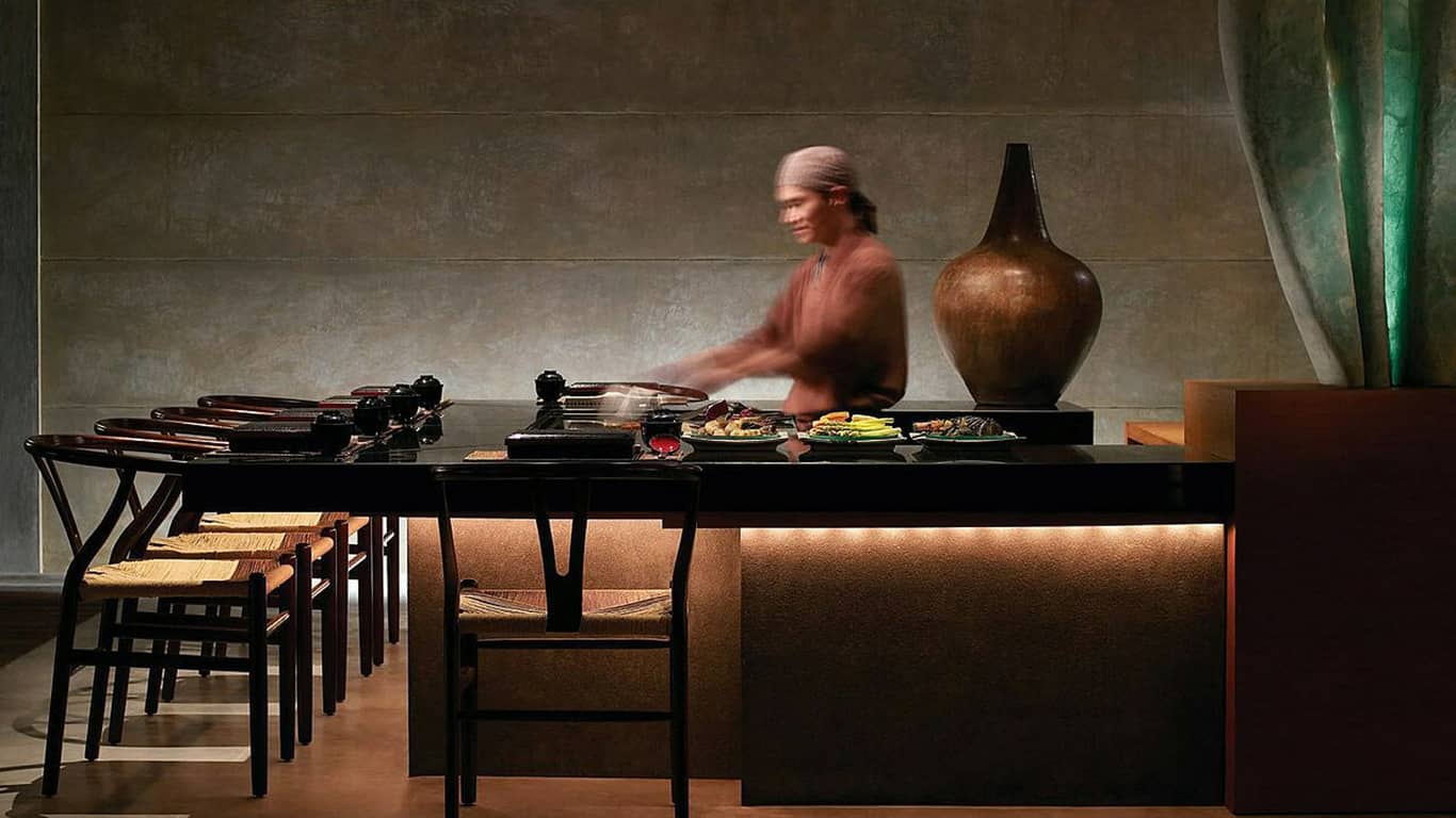 餐厅的泥炉和咖喱厨房供应各式亚洲及地方特色菜;夜晚时分,酒店在餐厅附近的水上花园内设置专用料理台,为客人提供精致美味的日式铁板烧。