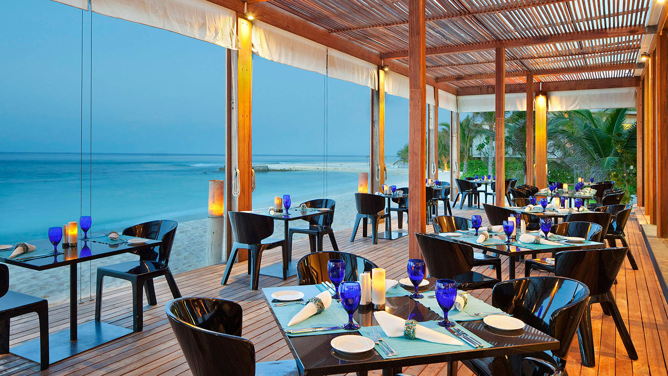 BAR-aveli Bar酒吧距离宁静的海洋,原始海滩和游泳池仅有几步之遥,是岛上观赏马尔代夫日落的首选地点之一。在露天海滩酒吧感受清新的海风的同时还可以品尝由酒吧熟练的男服务员精心制作的岛屿鸡尾酒和小吃。