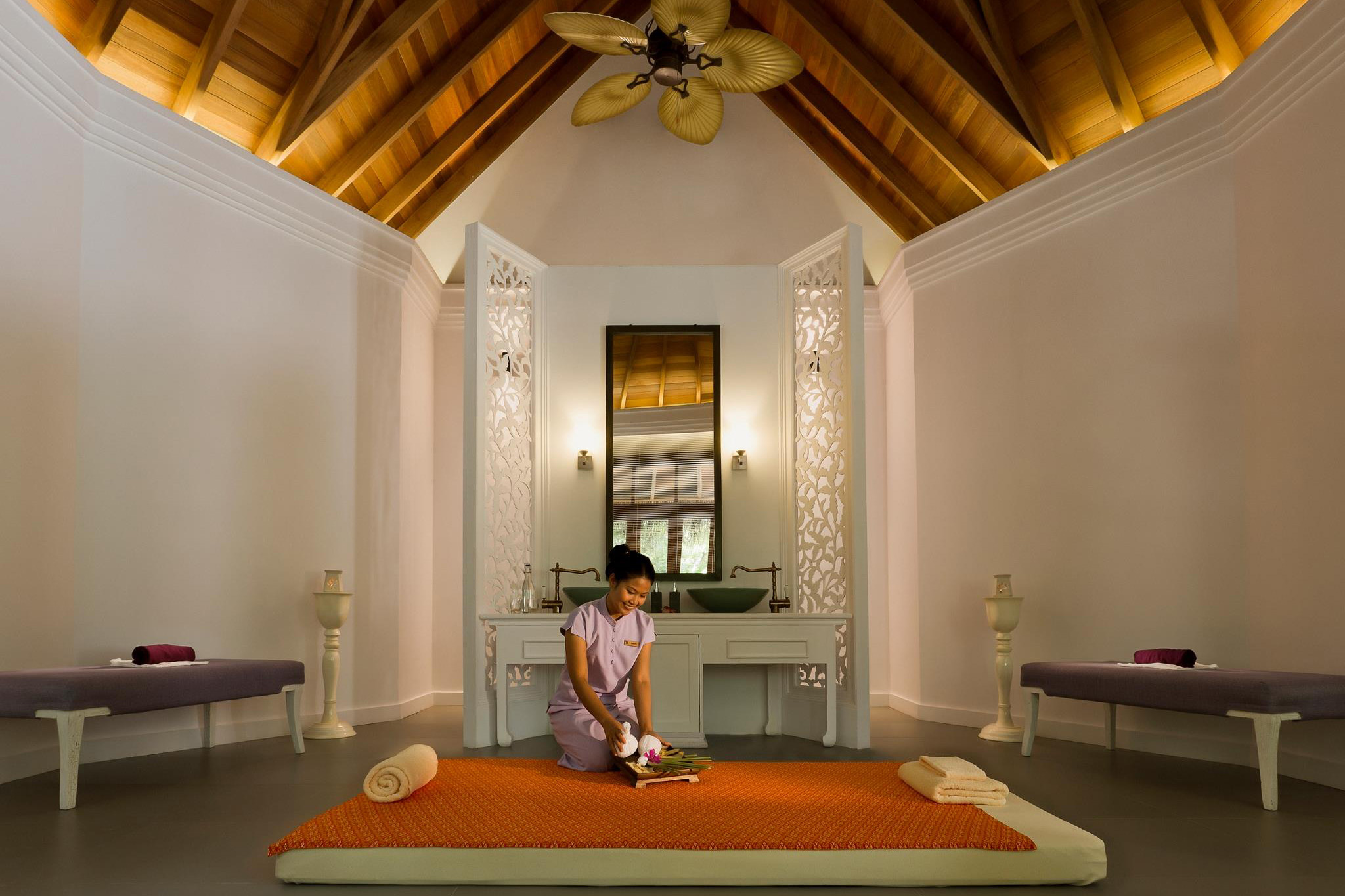 水疗中心的设计灵感来自天堂花园,搭配当代泰式设计和装饰,营造一个轻松温馨的氛围;各种专业疗法可以有效的舒缓精神并放松身体。