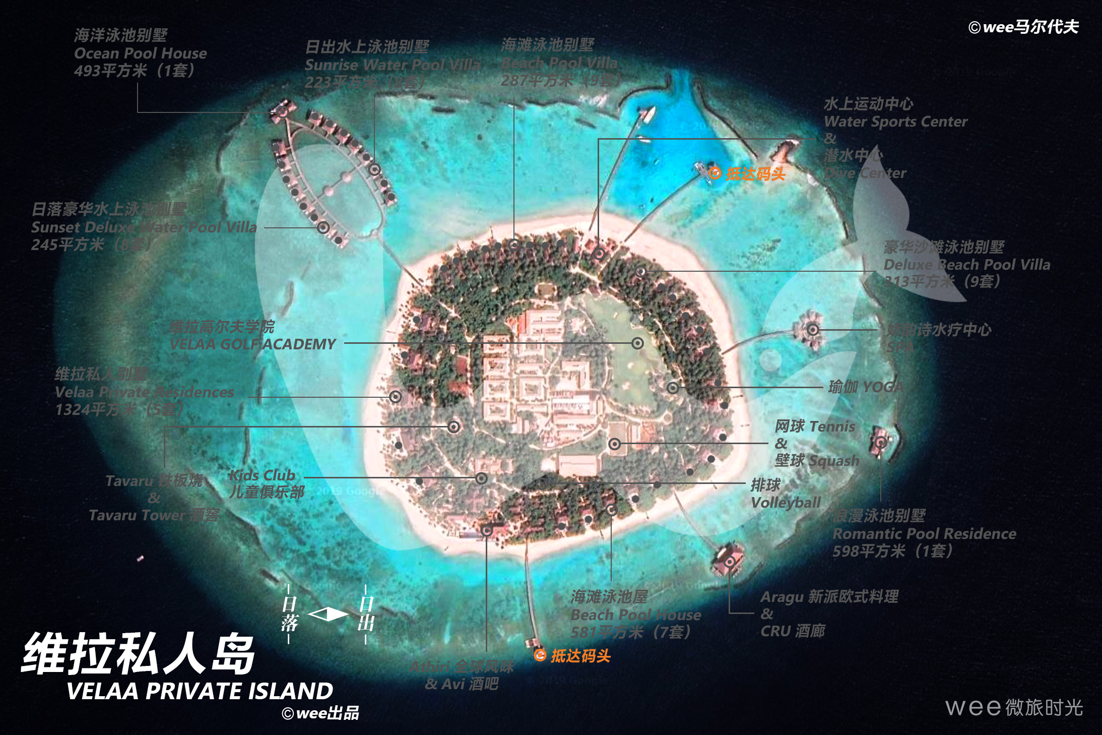 维拉私人岛(Velaa Private Island)2013年开业,是七星级的度假酒店。环岛周长1560米,在马尔代夫属于中型度假岛屿。沙滩5分/最高5分(沙滩100%环岛,平均宽度30米);浮浅5分/最高5分(房礁60%环岛,距离沙滩最近70米)。