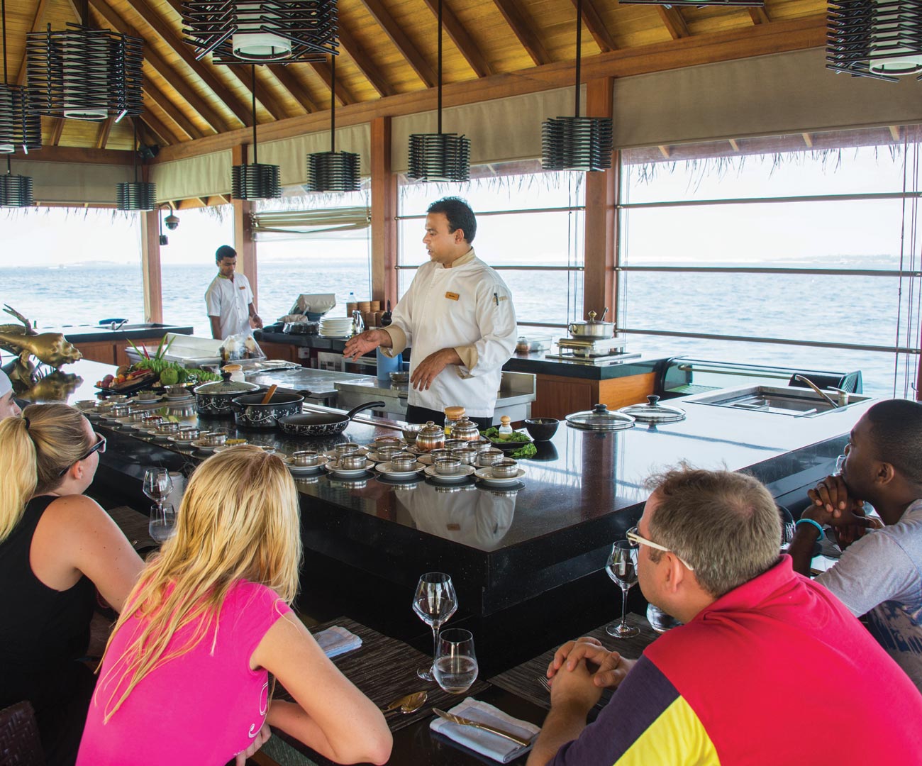 Hamakaze餐厅,在每周三和每周日中午的12:00开始,会举行马尔代夫当地传统美食的培训班。通过在这里的学习,你可以了解当地美食的菜谱,也能通过烹饪大师的培训学会制作,是在马尔代夫的新的收获,能让大家的度假时光更丰富多彩。
