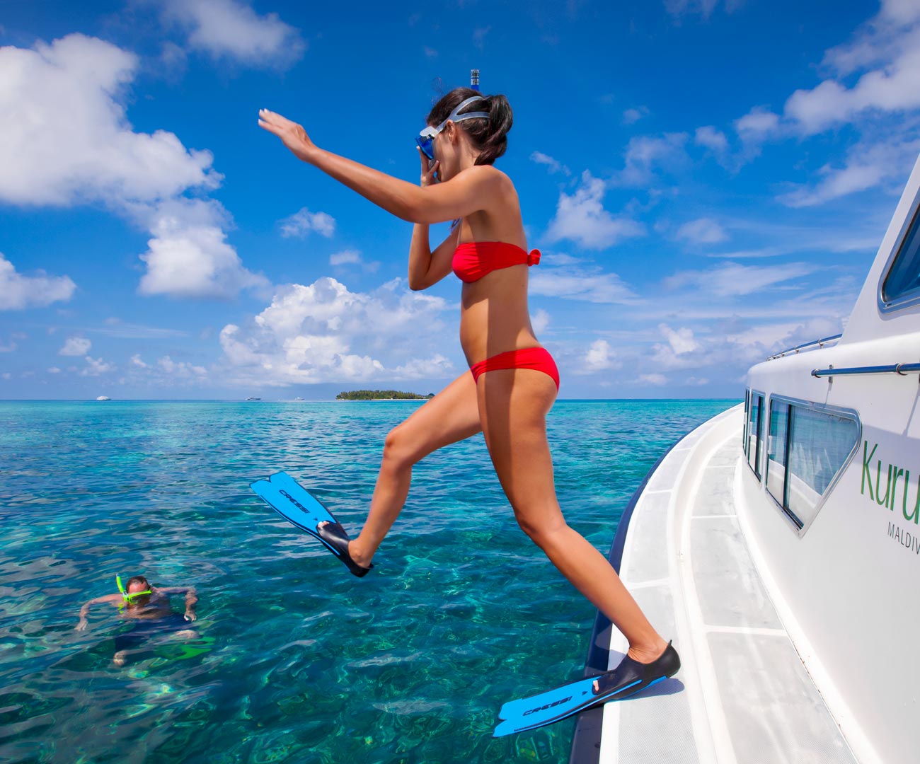 Kurumba-Maldives距离外洋的瓦杜海峡很近,泻湖周围环绕着防波堤,可以减少海浪和水流,为理想的浮潜条件。它们的平均水深为1.0到1.5米。这里有很多小珊瑚出现,各种活泼的海洋生物。在防波堤之外,珊瑚变少了,但是这里有丰富多彩的鱼类,黄貂鱼和海龟等等水下动植物。