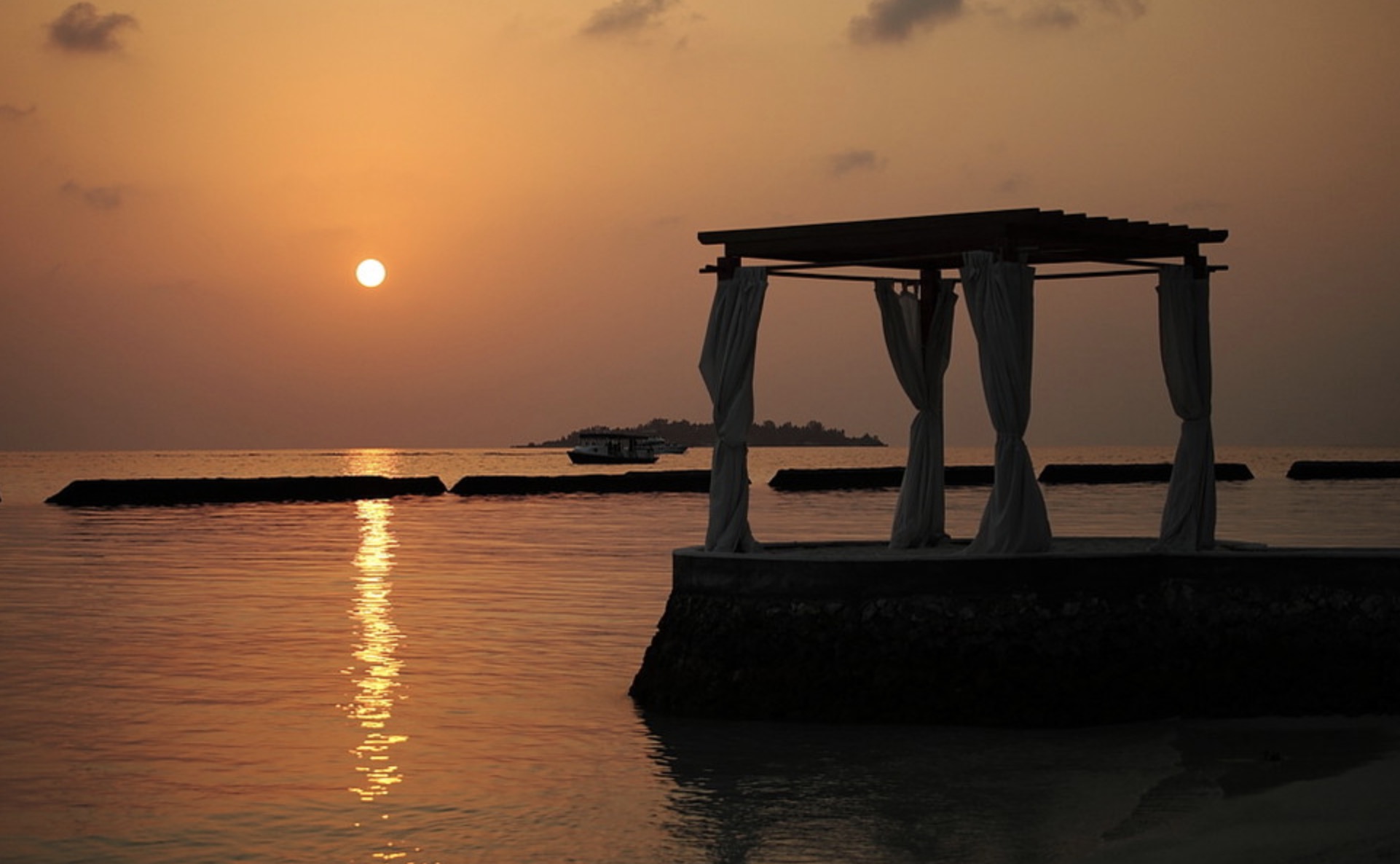 在日落的时候,出海捕鱼。