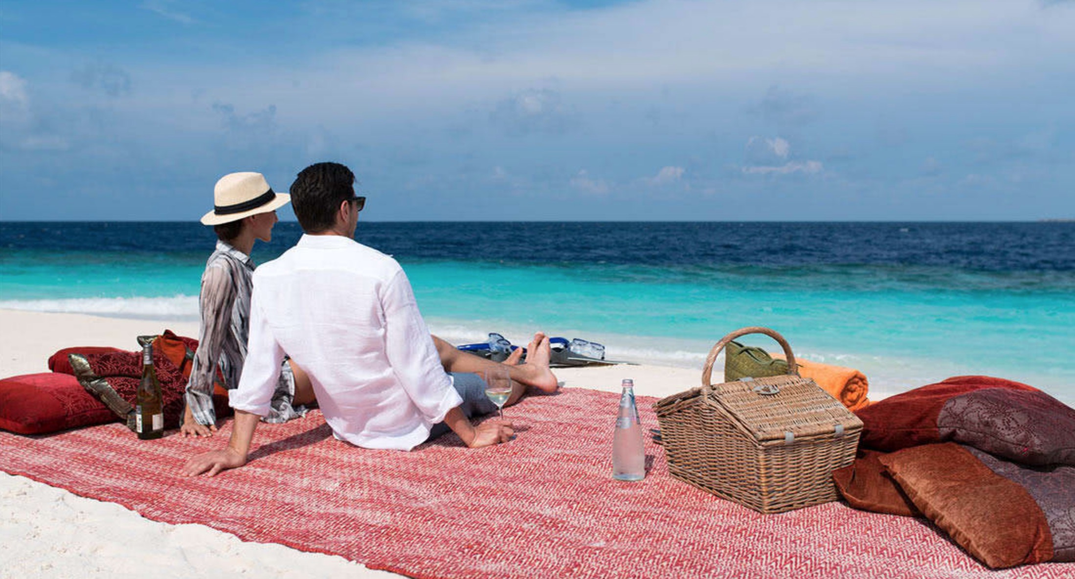 或在蓝天白云下,坐在沙滩上享受美食,布置优雅的餐桌旁,纯白色桌布在微风中游动。专业厨师选用最新鲜的当地有机食材,精心烹饪马尔代夫风味美食。