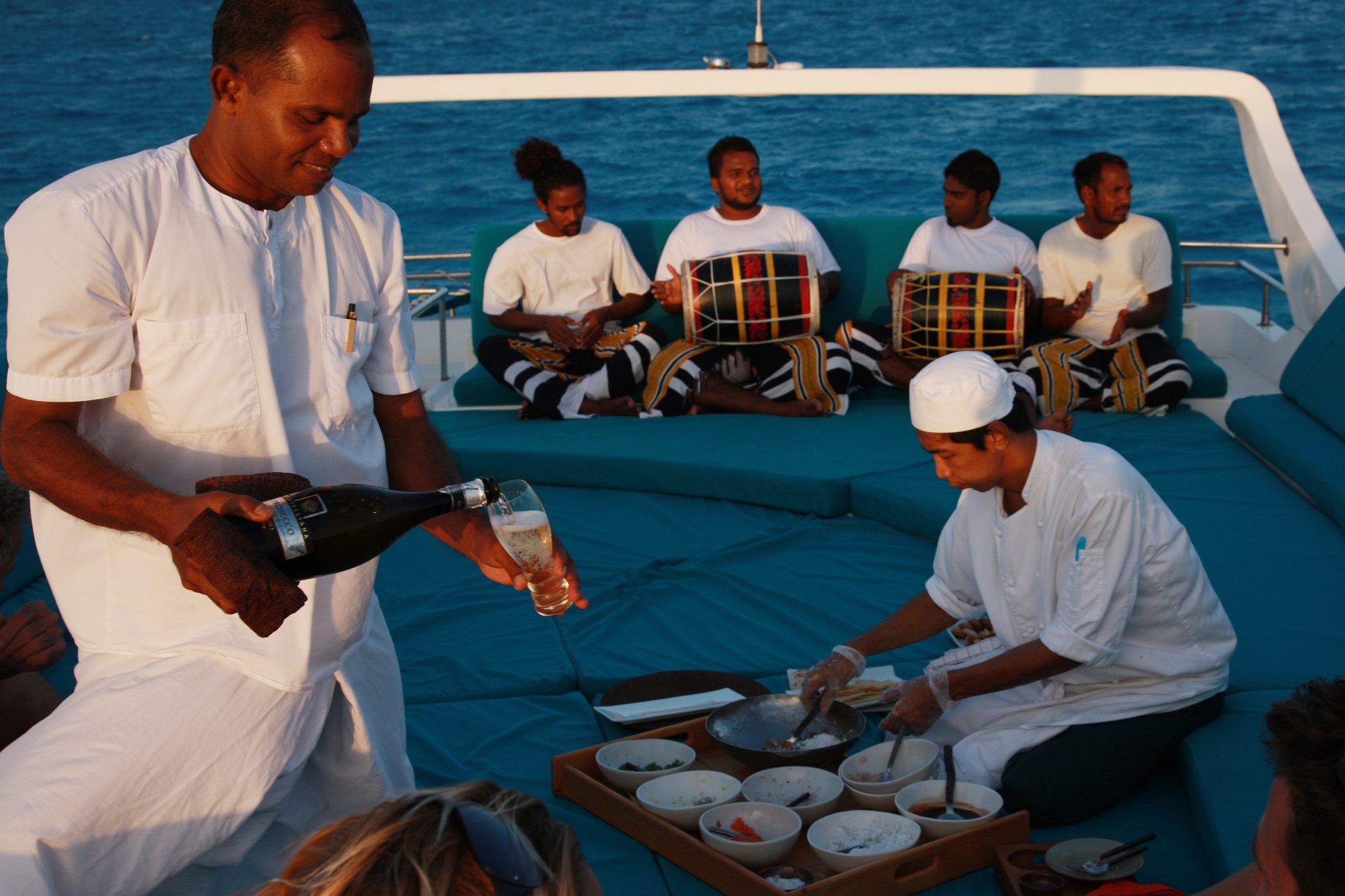 日落海豚迅游,这是假期中最迷人的体验之一:在落日的阳光下观看几十只有趣的海豚。当宾客在深水中航行时,船上的人员将为宾客提供精选的开胃酒和一杯香槟。