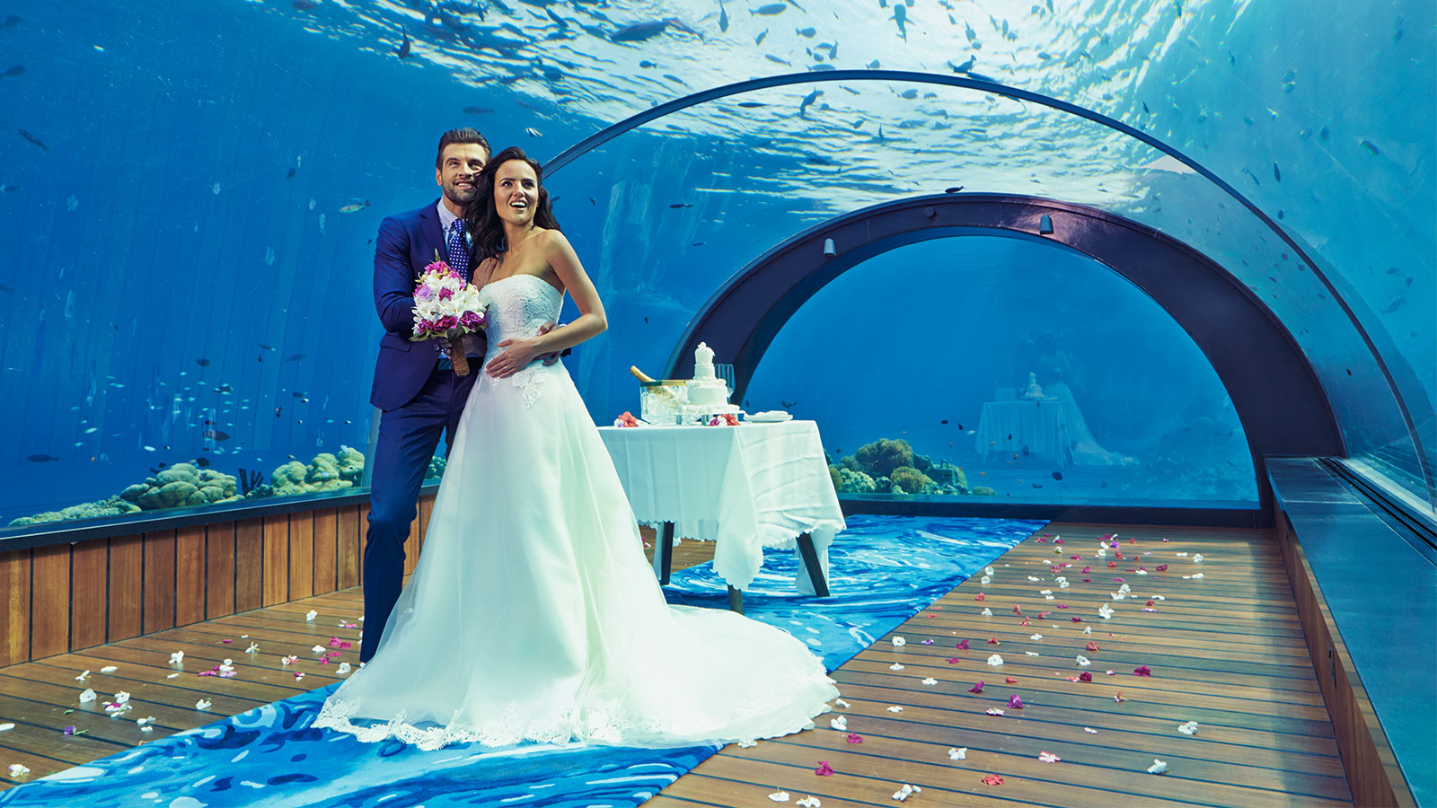 在特别的地点举行特别的庆祝活动,以及在5.8海底餐厅交换誓言,绝对是独一无二的体验。 全世界最大的全玻璃海底餐厅定能提供最唯美的氛围 – 大家也会为你的喜悦而鼓掌欢呼!