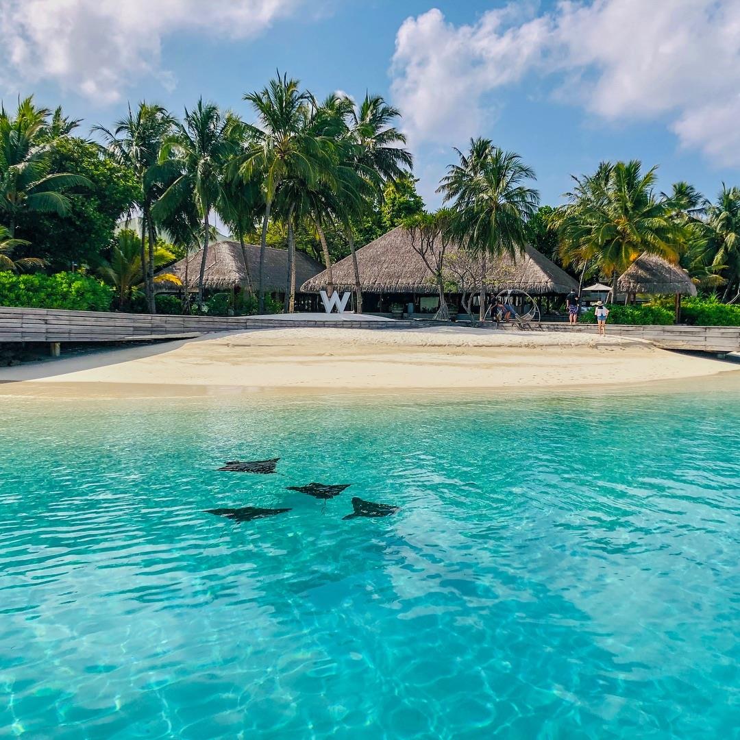马尔代夫宁静岛W酒店的沙滩和浮潜都是A级,还是很棒的。沙子很细很软,岛屿大小合适,一直深受蜜月年轻人的喜欢。