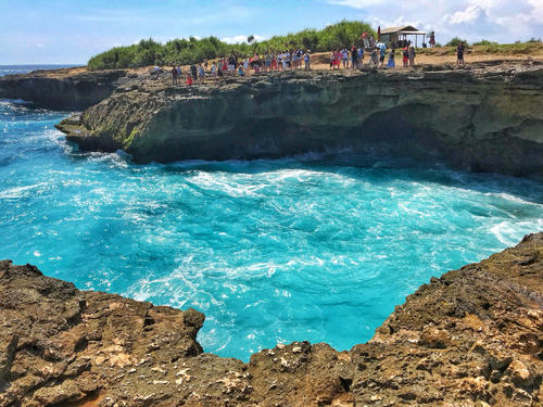 恶魔的眼泪,位于巴厘岛之一的蓝梦岛,是去巴厘岛时必去的景点之一。恶魔的眼泪是在海边的一块石头悬崖区域上,水汽的上升会形成一个水汽的漩涡,然后打到岸边,形成巨大的浪花,这就被人们称之为是恶魔的眼泪。
