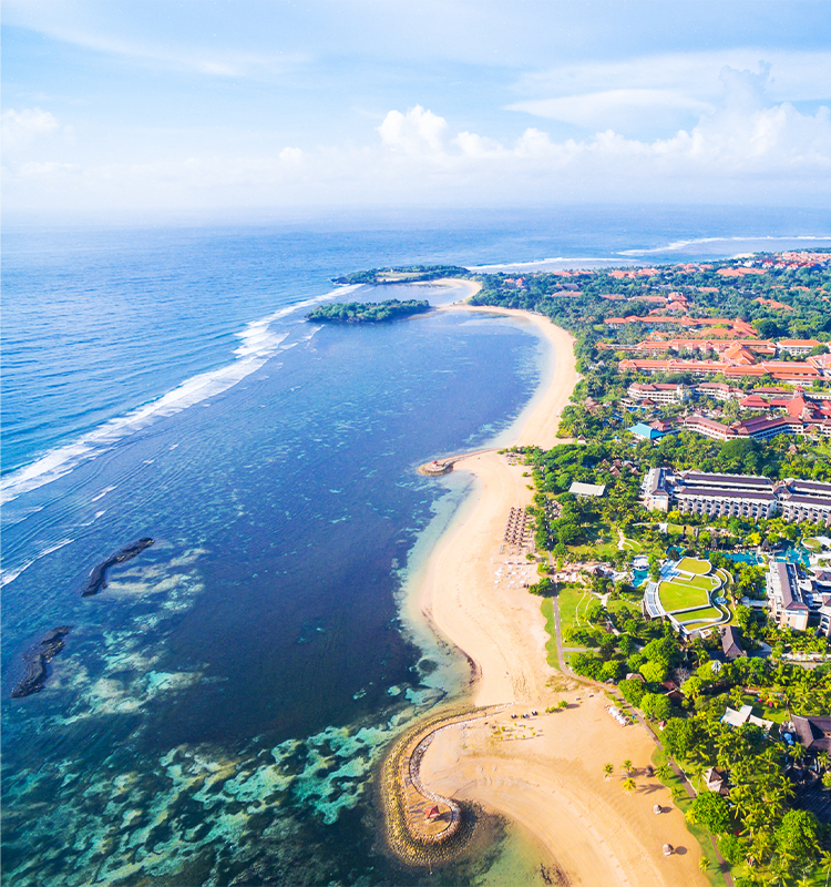努沙杜瓦是一个豪华度假区,这里五星酒店云集,依酒店地段分为不同的私人沙滩,游客们能享受到巴厘岛最干净的海滩,附近还有多家大型商场和免税店。此外,风平浪静的海滩非常适合潜水及各种水上活动。
