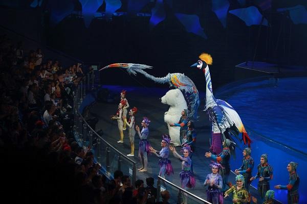 1、水中芭蕾-融入舞蹈与音乐的“水中芭蕾”, 邀请多国前国家队运动员出演;2、花样跳水-高达18米的花样跳水和刺激的浪桥跳水,是极限运动与艺术的完美结合;3、空中艺术-动感的绸吊杂技,展现柔美与惊险的空中艺术;4、人偶游行-憨厚的北极熊结合灵巧的表演杂技,更有各种造型可爱的人偶与观众互动。