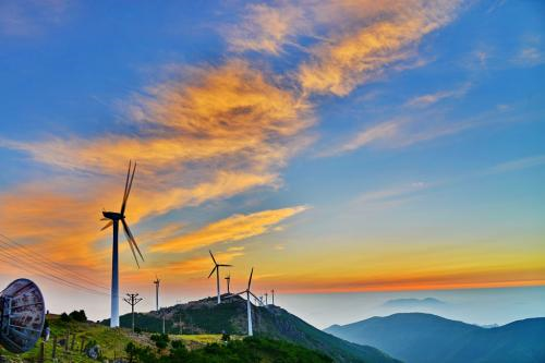 括苍山是浙江名山之一,山势雄拔陡绝,峰峦叠障。山上长年云雾缭绕,盘山公路自白云深处旋绕而下,胜似锦带飘舞与碧海、蓝天相映,正是“身缠丝绢半遮脸,娇娜异常惹人爱”的一派山海奇观。括苍山,21世纪中国大陆第一缕曙光首照之地,位于浙江省中部的台州市临海张家渡镇,巍巍的括苍山,绵延起伏,丰厚博大,主峰米筛浪,海拔1382.6米,系浙东南第一高峰,此起彼落的山脊,建有全国的四大风电场之一的括苍山风电场,错落有致的风机,等绚丽的自然景观交相辉映,形成一道壮观亮丽的风景线。边上的九台沟风景,有鬼斧神工之美,两岸悬崖峭壁,奇峰挺拔、瀑布飞扬,涧深水清。若论沿途秀色,不输徽杭,若单以九台沟而论,与楠溪江的大茹岩景区内的石门台有相仿之处。飞瀑涧流,怪石奇岩,松树呤风,植被丰富,典型的亚热带植物,绿得清秀,间或红色相当鲜艳,光线作用下,时呈金黄色。