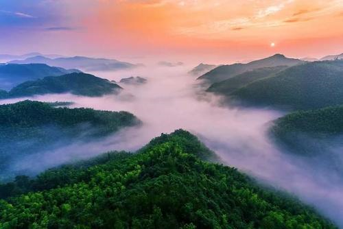 四明山国家森林公园位于浙江省东部四明山腹地的余姚、鄞州、奉化、嵊州、上虞五市区,呈东西向狭长形分布,总面积6665公顷,省道浒溪线穿境而过。