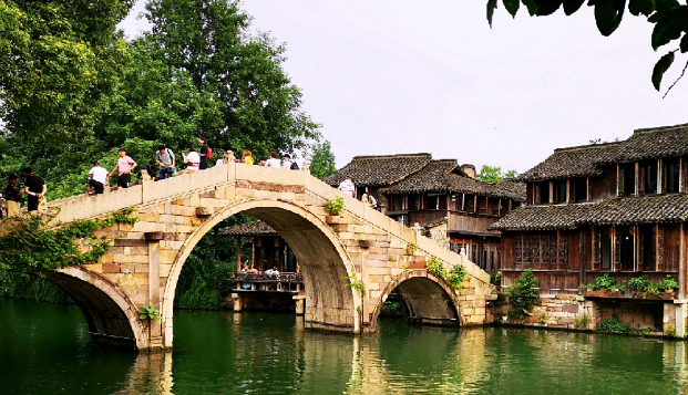 乌镇古桥大多为石桥,不仅历史久远,具有丰富的文化内涵,而且类型多样,造型美观,风格各异。有简便的石平桥,古朴的石拱桥,精巧的砖石桥等,其中以石拱桥居多。石拱桥源于东汉时期,因为拱桥主要承重构件的外形是曲的,因此在古代也被称为曲桥。曲拱的形状有半圆、圆弧、蛋形、马蹄形等,乌镇石拱桥的拱形,以半圆、圆弧为常见。