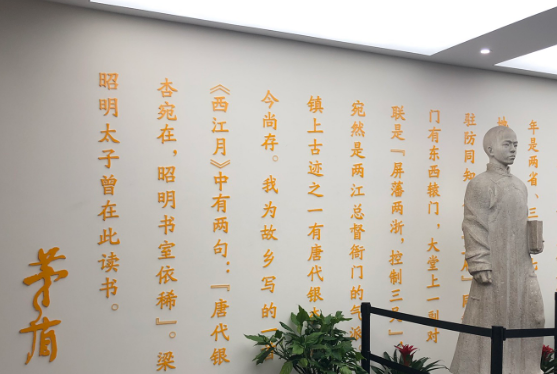 茅盾先生是乌镇最骄傲的儿子。展馆以人生之路和文学之路为主线,展示了茅盾先生波澜壮阔的一生。纪念堂左侧是茅盾生前使用的书房,按照北京茅盾故居的格局还原布置。纪念堂右侧的房间是陈列茅盾遗物的展厅,博古架上的玉盘、瓷器等是茅盾任文化部长期间出访各国的友人所赠。展厅左侧有四个播放机,可以聆听先生讲述笔名“茅盾”的由来和他创作生涯的开始等内容。