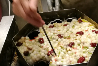 今天的梅花糕在继承了传统制作方法的同时,又加入小元宵、青红果、松子仁等,使其味道更加鲜美,外焦里嫩,而且有豆沙、果酱、果仁等十几种配制方法,用面粉、豆沙、白砂糖等十几种原料经特制炉具烘烤而成。