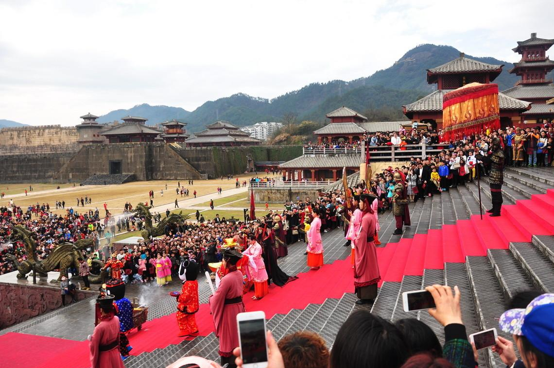 横店影视城秦王宫景区是1997年为著名导演陈凯歌拍摄历史巨片《荆柯刺秦王》而建。