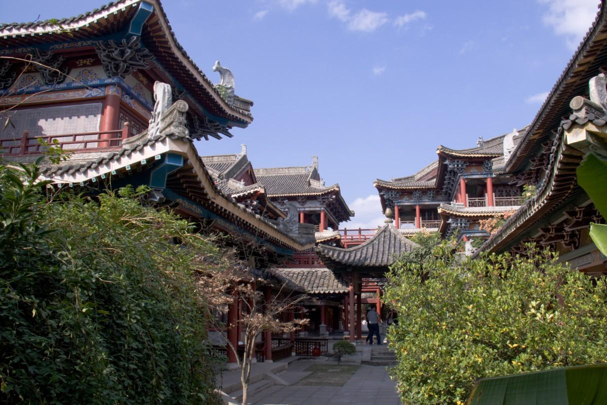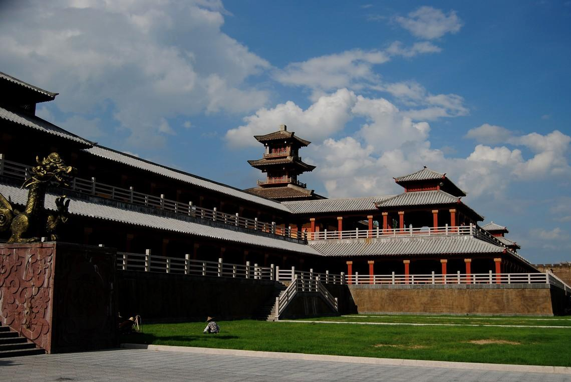 占地面积800亩,建筑面积达11万平方米。有雄伟壮观的王宫宝殿27座,主宫“四海归一殿” 高达44.8米,面积17169平方米。