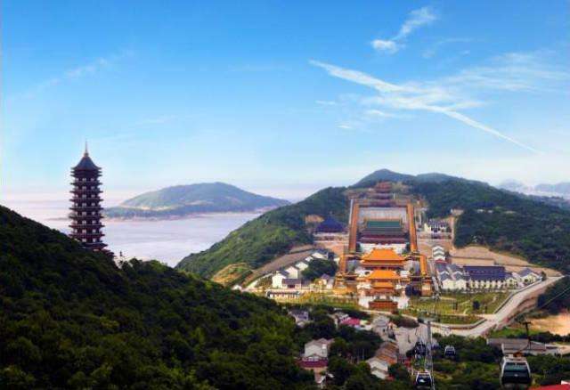 普陀山,位于浙江省舟山市普陀区,杭州湾南缘,舟山群岛东部海域,相传是观世音菩萨教化众生的道场。