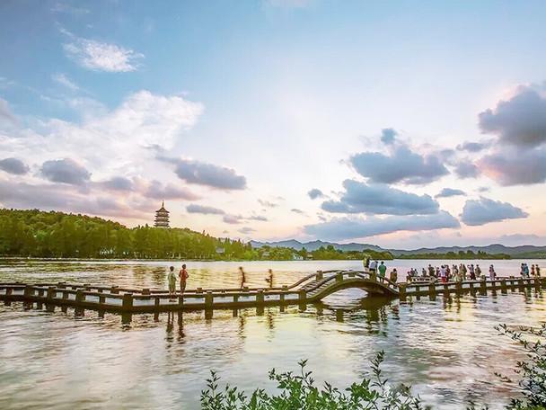 苏堤位于西湖西侧,南起南屏山麓,北到栖霞岭下,全长近3千米,是北宋诗人苏东坡任杭州知州时,疏浚西湖,利用挖出的葑泥构筑而成。后人为了纪念苏东坡治理西湖命名为苏堤,沿堤建有映波、锁澜、望山、压堤、东浦、跨虹6座单孔石拱桥。
