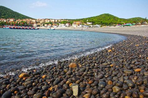 乌石塘以鹅卵石闻名,鹅卵石花纹斑斓,光洁可爱,小如珠玑,大如鹅卵,可与南京雨花石媲美。大乌石塘处樟州湾西岸,介于大平岗南麓水塔岩与庙跟头小礁嘴头之间。小礁嘴头外侧的小山似昂首向海的龙头,小山沿岸,礁石兀立,形状奇特,犹如龙眼、龙嘴。龙嘴旁有一石隙,当地渔民称其为龙洞。每当台风将临,此洞会发出巨大的轰鸣声,声响可远传十里之外,此时的乌石塘,依水斜垒的乌石也会一反常态,皱叠起一道道竖沟。每当明月之夜,澄碧的樟州港口波光闪烁,犹如无数蓝精灵在海面上跳跃。月光下,海潮披着银甲“前赴后继”拍击海滩,奏起“沙……啦啦……沙沙……啦啦”的声响,恰如天籁梵音。此时,游人若躺在清凉光洁的砾石上望明月,聆潮音,遐思油然,恍入幻境,人们称此景为“乌塘潮音”。