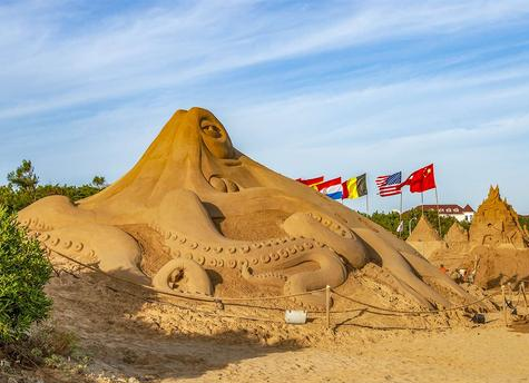 国际沙雕艺术广场是国内体现沙雕艺术的第一座综合性广场,此地是沙雕艺术的圣地,是沙雕爱好者的天堂。广场分沙雕展示区、购物餐饮区、演艺观赏区、黑松林休闲活动区,最具特色的当属沙雕作品展览区,展出了历届舟山国际沙雕节和国际沙雕界的精品,每一个都是独一无二,栩栩如生。中心演艺广场舞台周围是音乐喷泉,可以同时容纳万余人观看演出,逛累了还可以去观赏精彩的歌舞表演。
