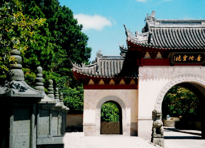 浙江舟山市,普陀山又称补陀洛迦,为中国佛教四大名山之一。素有“海天佛国”“南海圣境”之称,在浙江舟山市普陀区。相传为观音菩萨应化的道场,佛教认为观音菩萨是慈悲和智慧的象征。