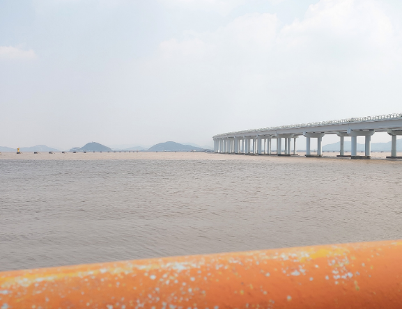 朱家尖海峡大桥是我国华东地区第一座特大型跨海大桥,大桥跨跨越舟山与朱家尖岛之间的普沈水道,是连接舟山岛和朱家尖岛的一座按照二级公路标准设计和建设的桥梁,大桥长2907米,大桥接线公路全长10.21公里。