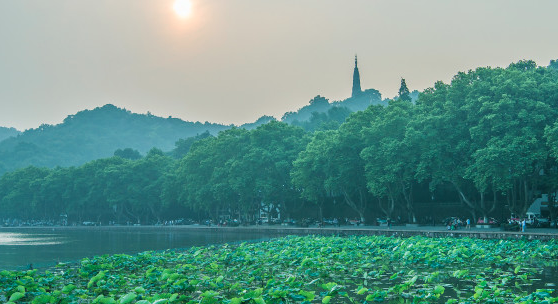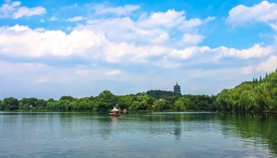 西湖,位于浙江省杭州市西湖区龙井路1号,杭州市区西部,景区总面积49平方千米,汇水面积为21.22平方千米,湖面面积为6.38平方千米。
