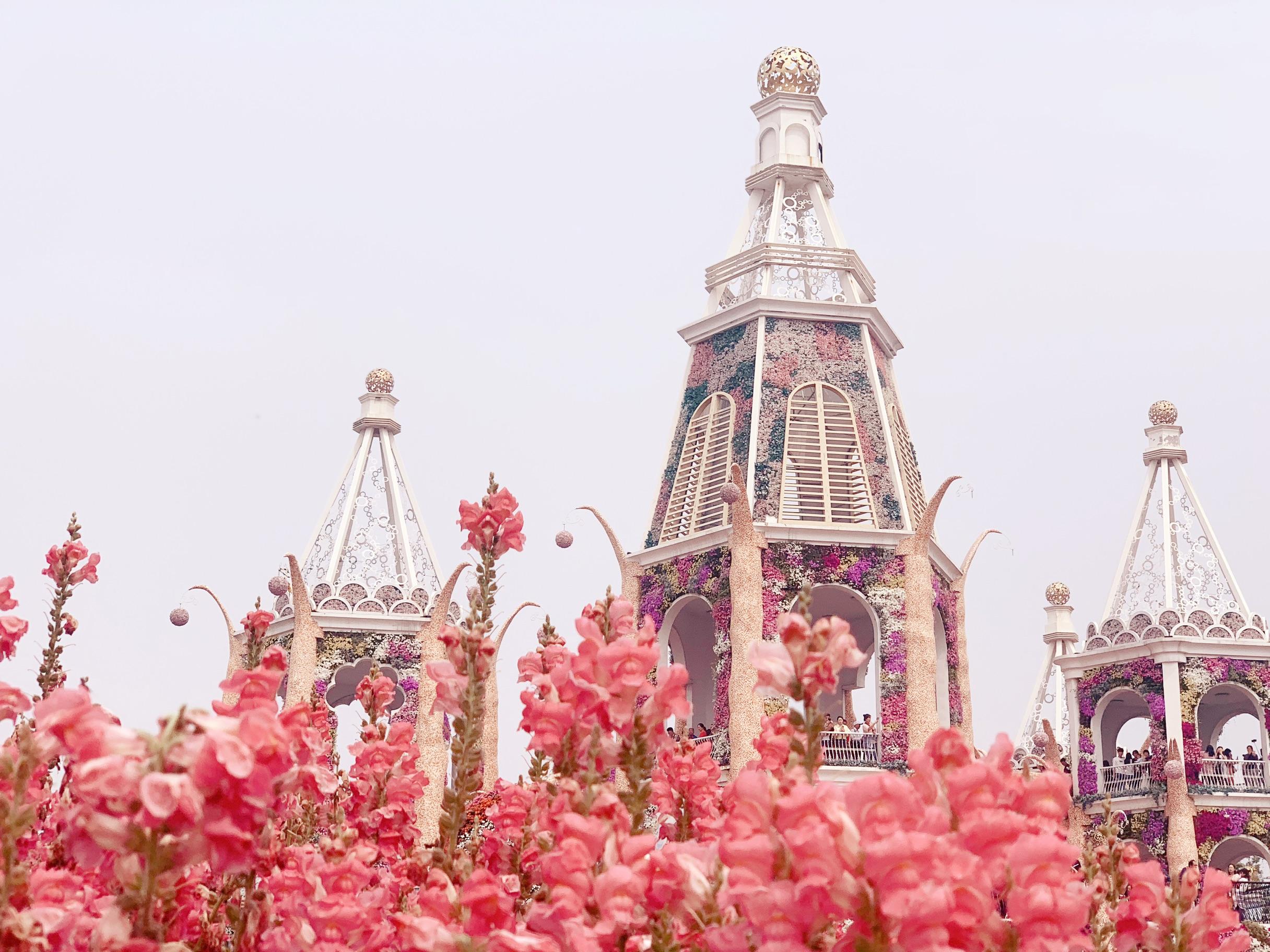 往里面走一点就看到花毯、花雕、花谷、花廊、花园、花教堂相映衬其中。