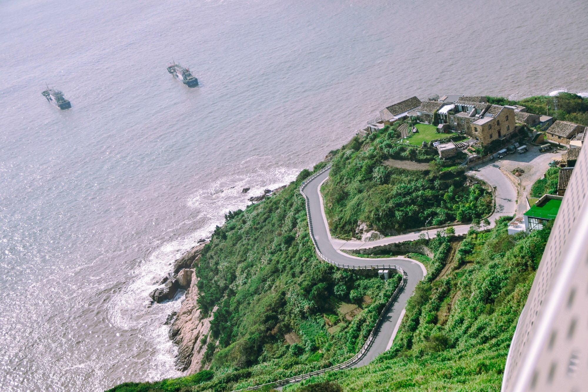 温岭石塘有两个观景台,一高一低,俯视时就像一副对戒,故叫对戒观景台,它是观赏石塘风光最佳地点。整个观景台成圆形,站在观景台内可360度俯瞰,看山看海看石屋,隐约还可以看见远海作业的渔船,还可以看日落和夜景,风景特别好,也是绝佳拍照点。
