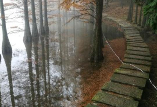 湿地公园建设内容包括,沿着池杉林打造水上栈道,类似宁波市江北区慈城镇英雄水库的水上栈道,游人可以漫行于水上,欣赏水岸池杉林,湖光山色。