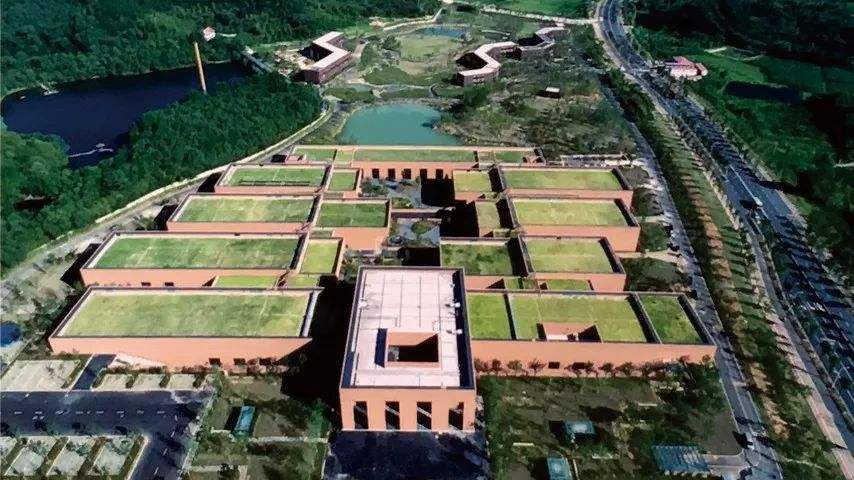 浙江自然博物院安吉馆由世界著名建筑设计公司德国戴卫奇普菲尔德事务所主持设计,遵循“建筑长在山坡上”的整体设计,分散布局思路,基本保持了地块的真山真水原生态。安吉馆占地300亩、馆舍6万平方米、投资11亿。是亚洲单体建筑最大的自然博物馆。