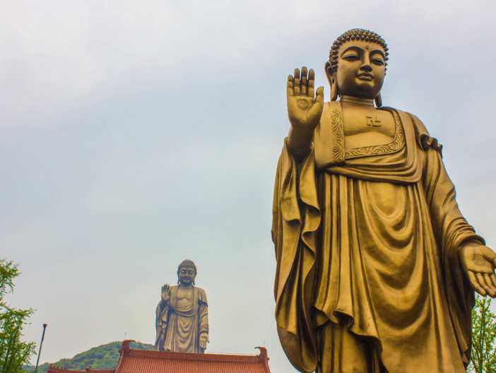 一、灵山大佛大佛所在位置系由唐玄奘命名的小灵山,故名灵山大佛。灵山大佛是在原中国佛教协会会长赵朴初先生亲自主持下建造起来的,在灵山大佛建设过程中,赵先生提出了神州“五方五佛”的理念——伴随着灵山大佛的建成,得以圆满了东方灵山大佛、南方天坛大佛、西方乐山大佛、北方云冈大佛、中原龙门大佛之“五方五佛”的格局。作为目前世界上最高大的露天青铜释迦牟尼立像,灵山大佛通高88米,佛体79米,莲花瓣9米。由1560块6-8毫米厚的铜壁板焊接而成,焊缝长达35公里,使其外型达到“天衣无缝”的程度。大佛铸铜约700吨,铜板面积达九千多平方米,约一个半足球场大小。在大佛的建造过程中,运用了现代高新科技,如先进的抗风、防震、避雷等措施,其中,避雷针就被巧妙的藏在大佛的发髻里。
