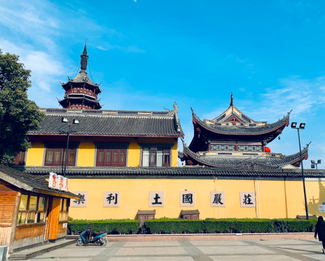 南禅寺有一座七级八面,高43.3米的古塔。传说是为了制服水患才把塔立在羊腰湾与运河的交会处。 据《南禅寺记》记载,在北宋雍熙年间(984-988),有僧持钵而来,走进庙中,忽然不见了踪影,后来发现寺壁上有该僧的影子,人们信以为佛,建造佛塔,并到苏北泗州接来了三尊佛像。南禅寺历经风霜,迭废迭兴,但总体来说,幸运大于不幸。北宋天圣年间重建,宋仁宗赐名“福圣禅院”。“八年以后,宋仁宗又为与南禅寺相对应的北禅寺赐名“寿圣禅院”。同一皇帝,给锡城两寺院,赐以“福圣”、“寿圣”之名,这是无锡佛教界引以自豪的幸事特别是南禅寺赐福有福,经历代修复,面目一新。可见那天王殿,殿身辉煌,香火鼎盛;妙光塔,塔尖矗天,气势不凡;五戒堂,堂内庄严,净化人心;放生池,池水碧绿,清澈照人。大雄宝殿中,如来形体雄伟,仪表安详庄重,慈眉慧目,微具笑颜,口欲启齿而又止,状若演法且未尽。诸佛罗汉,面貌慈祥多姿,形体丰满俊俏,眼神专注,衣纹流畅,匠人之巧,绝非一股。