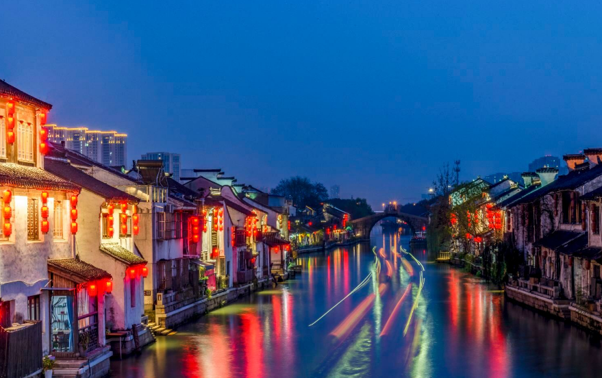 四、清名桥古运河景区清名桥古运河景区位于无锡市中心,仿古的水乡建筑和真正的老宅一起组成了街区,有可以参观的景点,也有酒吧、餐馆。这里夜景要比日景更美,粉墙黑瓦的宅子亮起了灯,一串串红灯笼倒映在运河里,吸引了无数摄影爱好者。