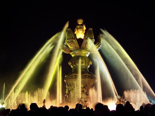 九龙灌浴位于无锡市滨湖区灵山路灵山胜境景区内的灵山大佛广场里,是国内最大的音乐动态青铜雕塑群,讲述了释迦摩尼出生的故事。 这里是灵山胜境的一大景观,随着音乐的伴奏、莲花开合、太子佛从中徐徐升起,在九龙喷水形成的水幕中自转一圈。我们可以看到一座含苞待放的巨大莲花铜雕矗立在前方,巨大的荷花由四个威武的大力士托起,底部衬托着白色的圆形大理石水池,九条飞龙和八个形态各异的供养人环绕着巨大的水池。