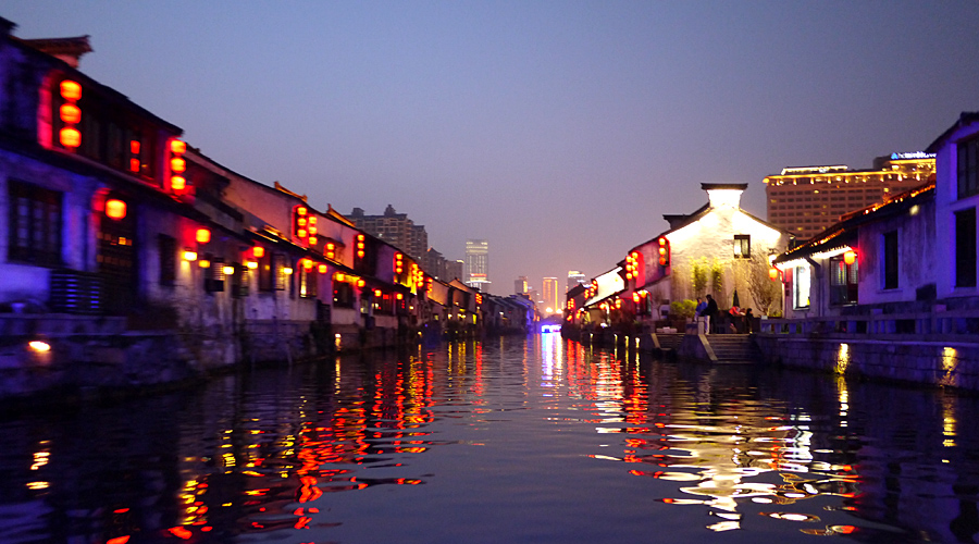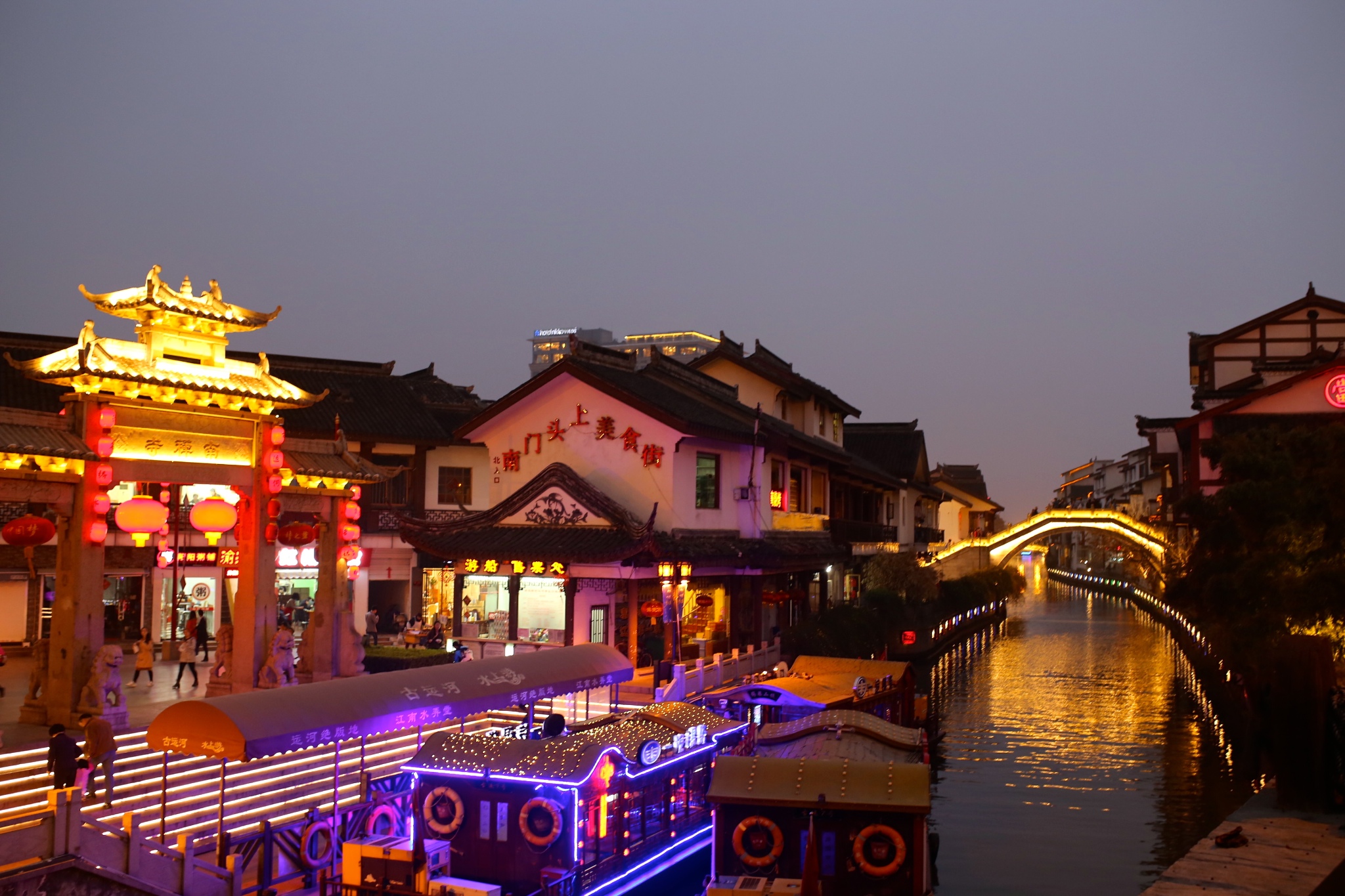夜幕降临,华灯初上的无锡特别美,深蓝的天空,伴着路边五彩的霓虹灯,让人流连忘返。走到南禅寺,可以看到古色古香的寺院和塔。借助彩灯的相助,运河的夜景很美。