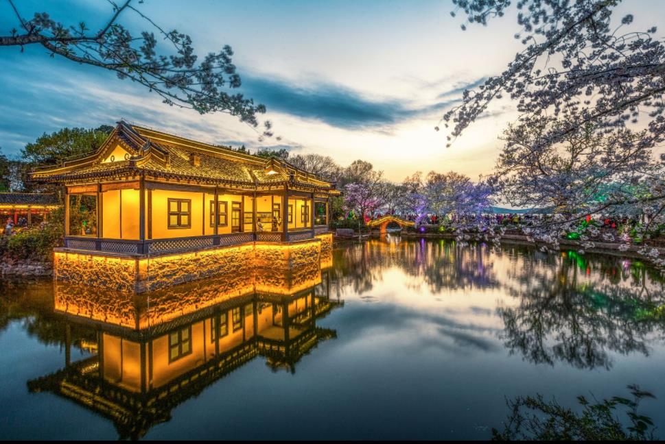 是太湖北部的一处半岛,形似浮鼋翘首而得名。鼋头渚三面环水,既有山长水阔、帆影点点的自然美景,又有小桥流水的山乡田园风光,是太湖山水景色大美之处。太湖仙岛是鼋头渚必游之处,岛上有道教仙宫和道、佛两教石窟塑像。登临半岛上的鹿顶山可环顾湖滨翠色,天气晴好时能看到湖面上的翩翩舟影,感受到太湖的浩淼之美。