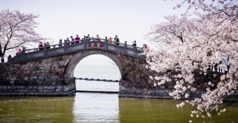 在鼋头渚樱花谷内有一座别致小桥,日式风格,弯曲如虹,通体红色,称为“樱缘桥”。“樱缘桥”连接鼋头渚内樱花谷和中日樱花友谊林两大赏樱胜地,驻足樱缘桥上,仿若置身于樱花的云蒸霞蔚中,而传说恋爱中的男女在樱花盛开的时候一起走过这樱缘桥,就会得到幸福的一生。