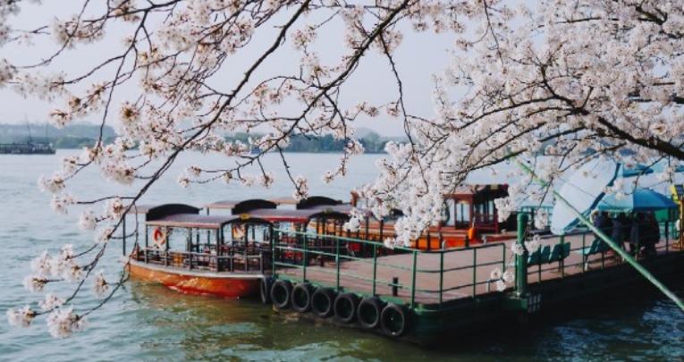 鼋头渚景区内从充山隐秀至樱花林的一条主干道,一侧芳草菁菁,山林茂密,一侧濒临秀水蠡湖,十里芳径依山傍水,移步换景,两侧间植樱花树,形成十里樱花大道,和路两畔青山秀水相得益彰,好一幅江南春日美景图!